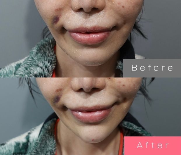 ヒアルロン酸を注入し、ほうれい線を目立たなくします。